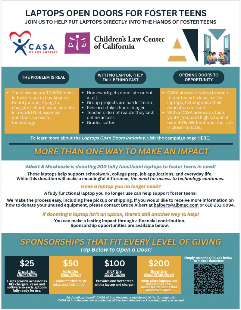 Now imagine there are nearly 10,000 foster teens in L.A. County. That’s a lot. Without a laptop, normal high school is much harder. Research drags, teachers may not even know there’s no internet at home, and then grades suck. If some of those kids had access to a laptop all of a sudden: